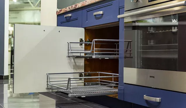 Используя выдвижные системы, вы избавите себя от необходимости покупать лишние контейнеры и лотки для хранения. Все специи, крупы, бутылочки с маслом и, конечно, посуда всегда будут у вас под рукой.