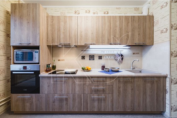- Адаптированность под кухни любого размера. В просторном помещении, при использовании линейного кухонного гарнитура останется масса свободного места, тогда как в компактном он не займет лишнего пространства. Остается лишь определиться с количеством требующихся модулей. Выбирая гарнитур для кухни, прямой на заказ можно приобрести для помещения с любой архитектурой, даже если планировка помещения специфическая.