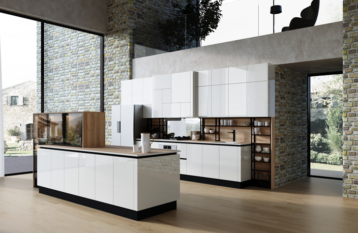 В каталоге бренда «Кухонный двор» вы можете подобрать гарнитур белого цвета, имеющий любую форму: прямую, угловую, П-образную, с островом. Для изготовления мебели мы используем натуральный массив, обычный и шпонированный МДФ, экомассив и экоплиты Egger.