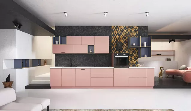 новинки сезона, оформленные с однотонным покрытием мебельного фасада;