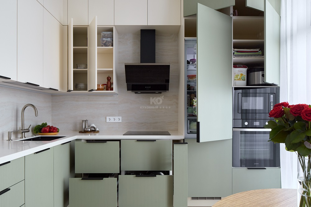 Все это менеджеры салонов бренда «Кухонный Двор» учитывают при проектировании индивидуального проекта, потому что именно благодаря таким деталям рождается комфорт и удовольствие от использования кухни каждый день.