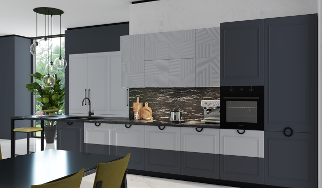 В нашем салоне «Кухонный двор» вы сможете приобрести гарнитур из массива дерева или качественного МДФ. Мы производим модели разной планировки, расцветки и наполнения.