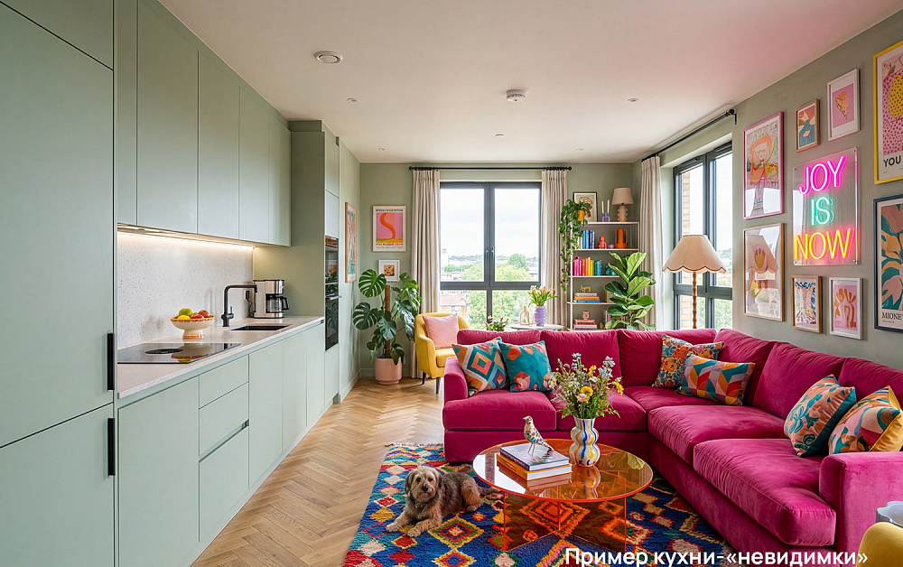 Смелое смешение эпох превращает кухню в настоящую галерею стиля, где каждая деталь рассказывает свою историю. Винтажные элементы, словно ноты из прошлого, добавляют характер и эмоциональный оттенок, превращая дизайн большой кухни гостиной в пространство, которое невозможно забыть. Такой интерьер живёт своей жизнью, удивляет гостей и отражает уникальность хозяев, создавая гармонию между прошлым и современностью.