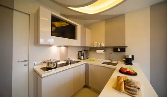Кухни глянец с HPL покрытием стоят несколько дороже, чем версии с облицовкой из ПВХ. К преимуществам HPL-пластика можно отнести износоустойчивость, влагостойкость и прочность.