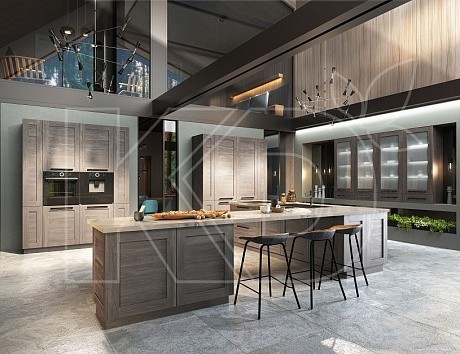 Компания «Кухонный Двор» производит большие кухни для частных домов на собственном производстве в Московской области. На гарнитур действует гарантия 12 лет.