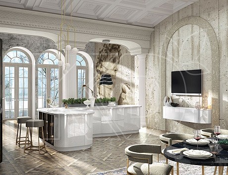 Если кухня имеет квадратную форму или нестандартную, в этом случае клиент может предпочесть самые разные варианты планировки: кухню-остров и полуостров, Г-образную, линейную и другие.