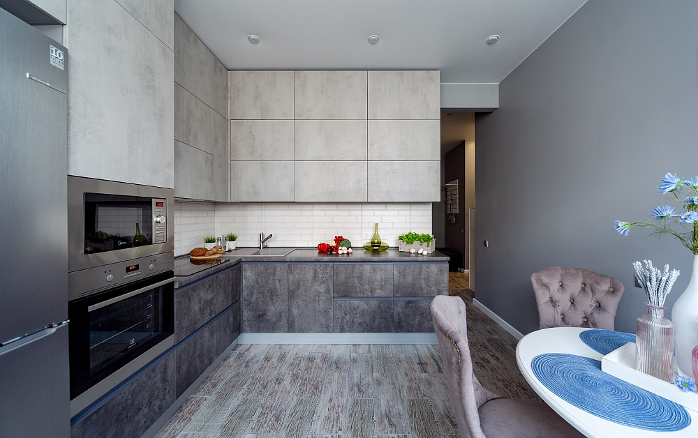 Данное правило в первую очередь касается параллельной и П-образной планировки. Для свободного перемещения между модулями потребуется расстояние 1,2-1,5 метра. В противном случае будет неудобно открывать дверцы шкафов и духовок.