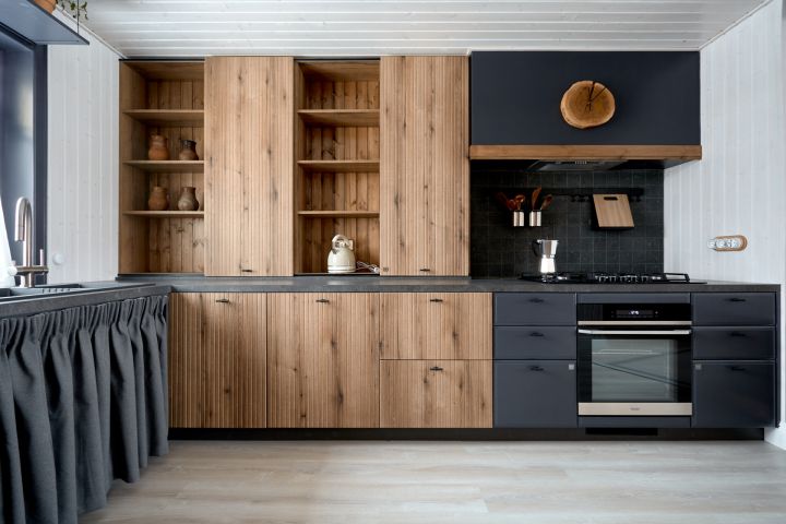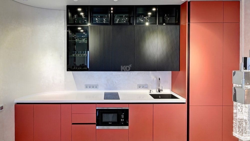Если стены кухни не позволяют установить стандартный комплект мебели, рекомендуем заказать кухню по индивидуальным размерам. В этом случае дизайн-проект будет реализован с учетом особенностей помещения. Например, ниши будут использованы для установки полок и бытовой техники.