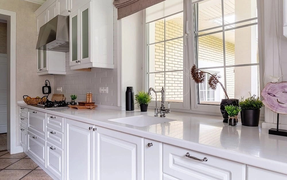 Гарнитуры с белоснежными фасадами не выходят из моды десятилетиями. Подобные модели обладают визуальной легкостью, привлекательностью и подходят для помещений любого размера.