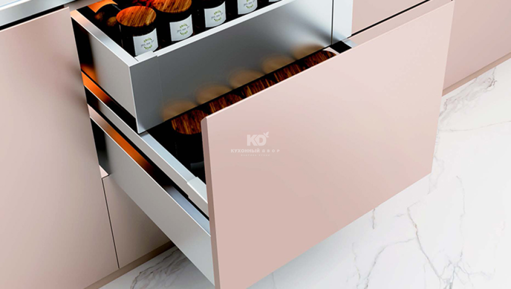 - Наличие синхронизатора. → Легкое открывание ящиков даже если нажать на угол фасада.