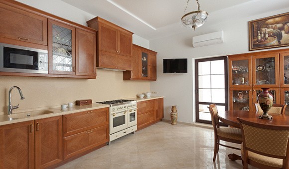 Большой популярностью пользуются классические кухонные комплекты в коричневых тонах. Классические кухни отличаются симметричными линиями, выверенными формами и роскошным дизайном. Для декоративной отделки фасадов применяются резные узоры, лепнина, позолота. Выбирая гарнитур в классическом стиле, не забудьте об отделке стен качественными обоями. Они должны подчеркивать красоту и роскошь мебели. Также рекомендуется отказаться от использования в интерьере пластика и хромированных деталей. Предпочтение следует отдать натуральному дереву и камню.