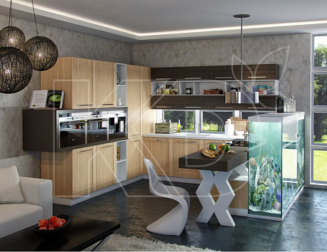 Купить гарнитур из натурального дерева, экомассива, МДФ и других качественных материалов предлагает бренд «Кухонный