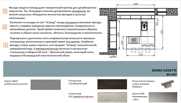 Мечта любой хозяйки – это современная, удобная кухня, которая отличалась бы и идеальным интерьером. Для этого важно подобрать качественную и надежную мебель, которая будет подходить по этим форматам. Один из самых популярных товаров у нашей бренда это кухня в современном стиле «Астрид», которая завоевала сердца многих наших покупателей, потому что отличается высоким качеством и привлекательным внешним видом.