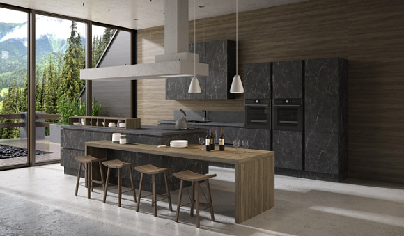 Экономия пространства. Темные кухни визуально могут увеличивать пространство за счет цвета. Воспользоваться приемом «расширения» метров можно и нужно, разместив все необходимые элементы мебели в одной зоне.