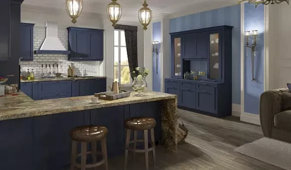 Стили интерьера синего кухонного гарнитура