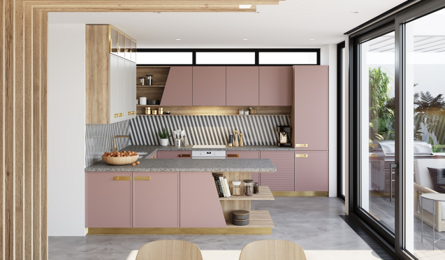 для фартука и столешницы важно выбирать цвет, учитывая дизайн проекта. Использовать светлую палитру, чтобы визуально увеличить пространство. Темная палитра также поможет создать нужный контраст.