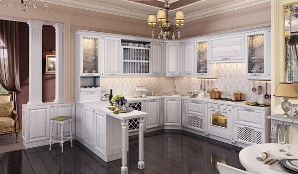 Визуальное расширение пространства. Кухни в светлых тонах подходят даже для небольших комнат. Фасады подобных комплектов отражают солнечные лучи, за счет чего помещение кажется более просторным.
