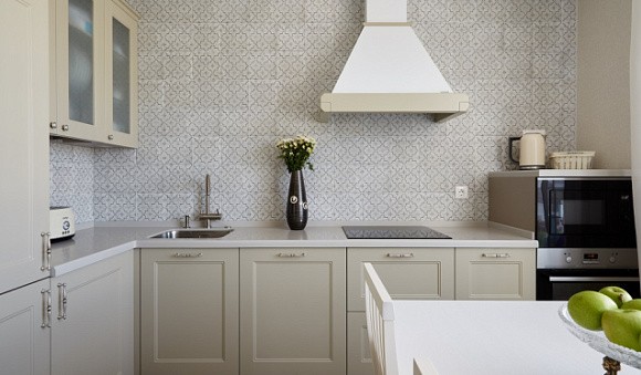 В полуостровных кухнях мебель располагают вблизи двух смежных стен, в то время как другая находится в центральной части помещения. С точки зрения цветов, наибольшей популярностью пользуются: