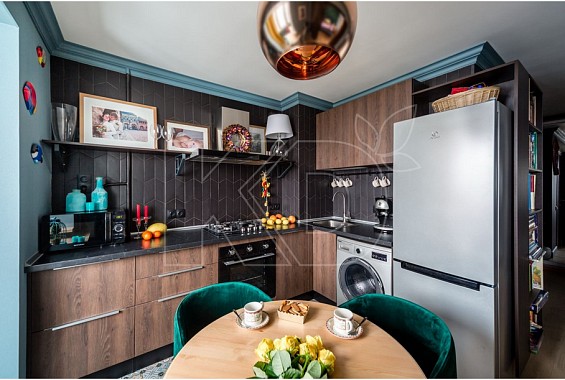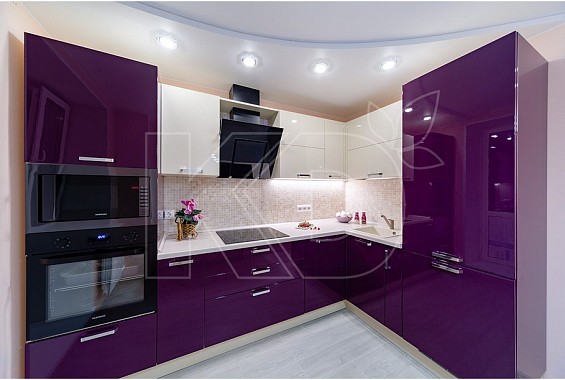 Угловая кухня вместительная и удобная, благодаря такой форме обеспечивается максимум простора на кухне. Угловой кухонный гарнитур гармонично сочетается с барной стойкой или островной столешницей.