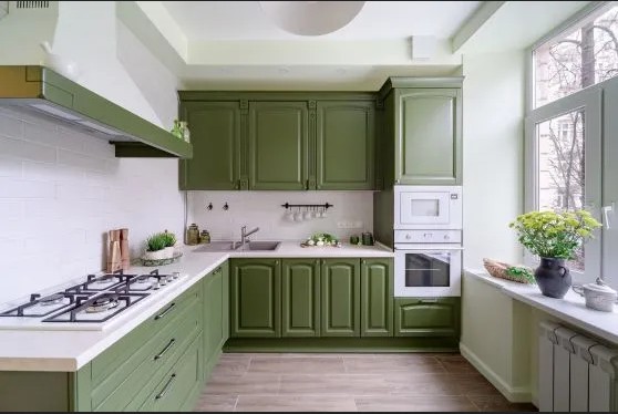 Угловые кухни зеленых оттенков
