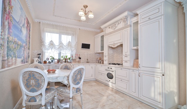 Элементы отделки кухонного гарнитура золотом и патиной