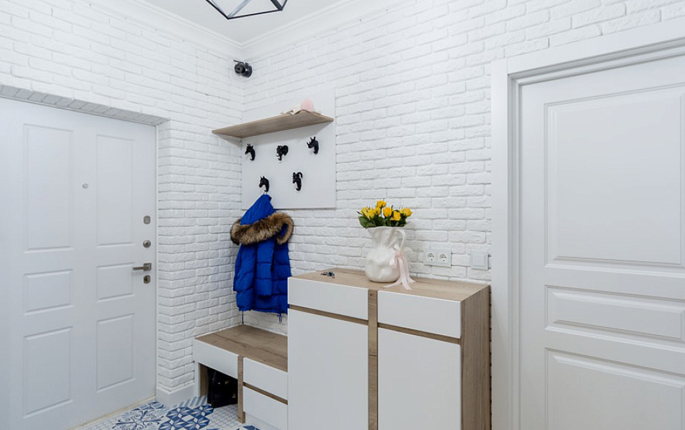 Для наших замечательных клиентов была спроектирована прихожая, в которой царит лаконичность – оригинальный пенал и шкафчик для обуви знают свое место и дело, отлично справляясь с функцией размещения полезных вещей. Встроенный шкаф коридора украшают раздвижные дверцы с оригинальным декором, которые хозяева заказали в бренда «Кухонный Двор». Шкаф-купе для спальни тоже дело рук мастеров нашей бренда, но для этой комнаты выбрана более нежная и спокойная цветовая гамма.