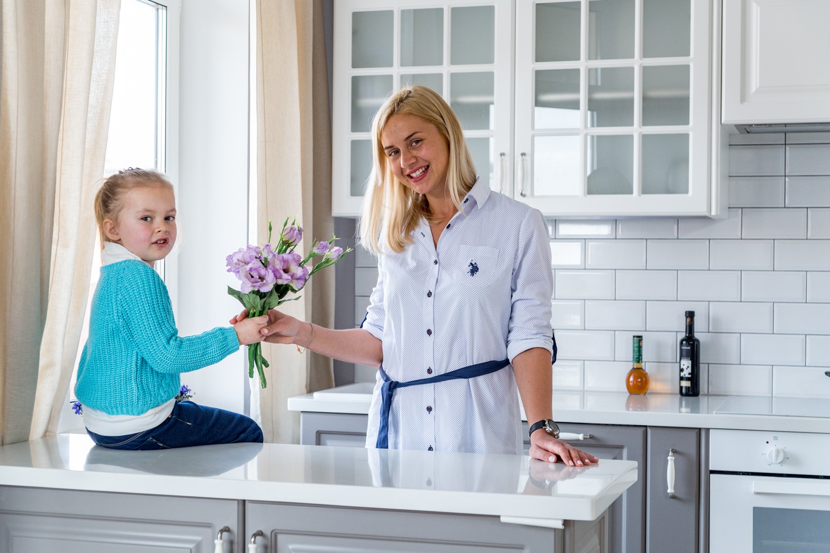 Уникальное сочетание белого и графитового рождает природные ассоциации: столь неожиданный контраст можно сравнить с весенней проталиной. Интерьер, главной жемчужиной которого будет эта кухня в бело-серых тонах, станет настоящим островком спокойствия и гармонии, в котором нет места суете и негативным мыслям.