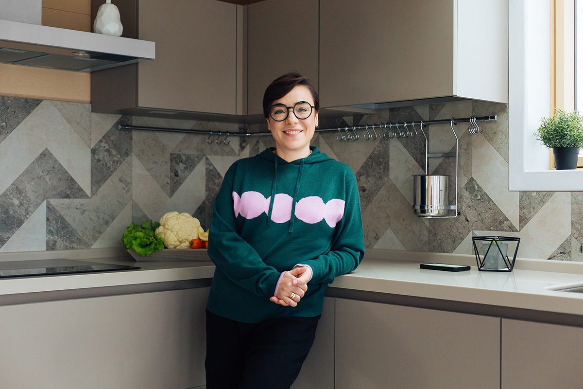 Здесь использована невероятно стильная комбинация бархатистых поверхностей с Особой матовой тактильностью (Extra Touch Matt) и системы открывания фасадов без ручек Интегрированный профиль (Space Line). На этом сочетании основан уникальный образ кухни: лаконичный, сдержанный, и в то же время дружелюбный. Матовые поверхности «Ханны Натив» пробуждают желание прикасаться к ним снова и снова. Делать это можно без опаски, ведь фасады с особой матовой тактильностью (Extra Touch Matt) устойчивы к загрязнениям и неприхотливы в уходе. Очень полезные качества, особенно когда в доме живёт трое детей!
